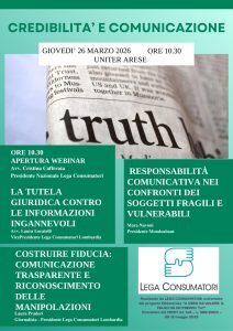 Prosegue il cammino formativo di Lega Consumatori Lombardia con un webinar dedicato agli operatori di sportello, dal titolo “CREDIBILITA’ E COMUNICAZIONE”.